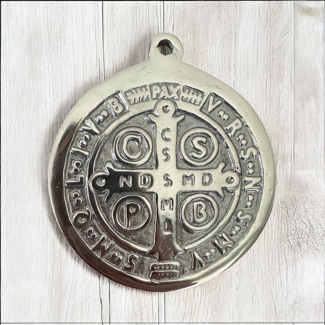 2 Sided St. Benedict Solid Pewter Wall Medallion(Large 8")