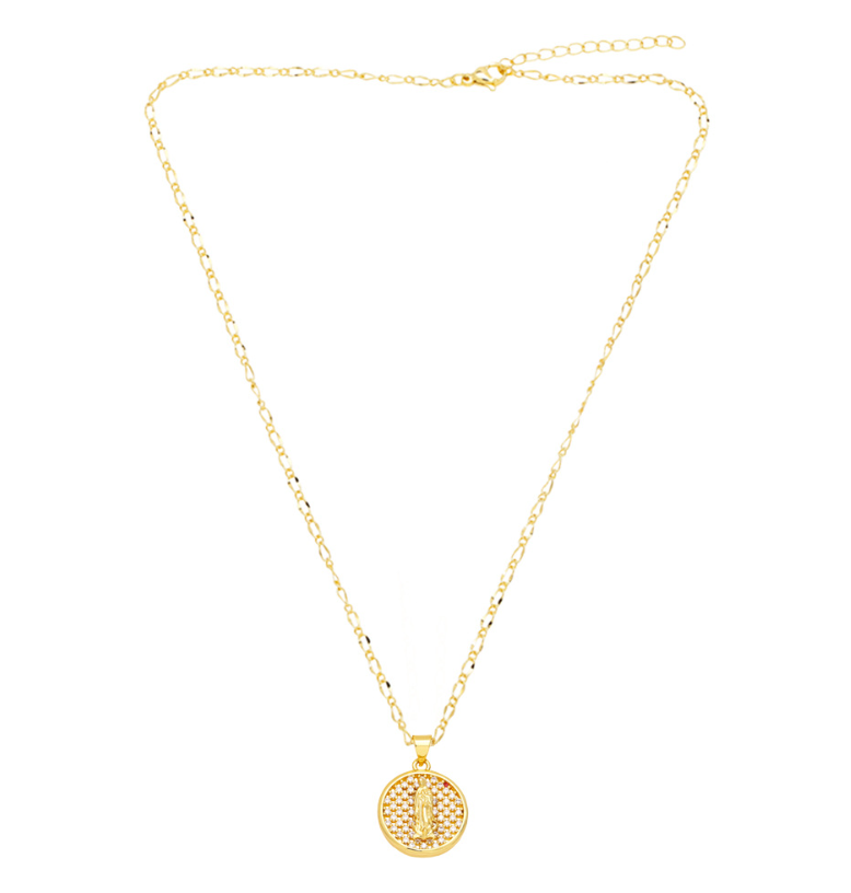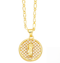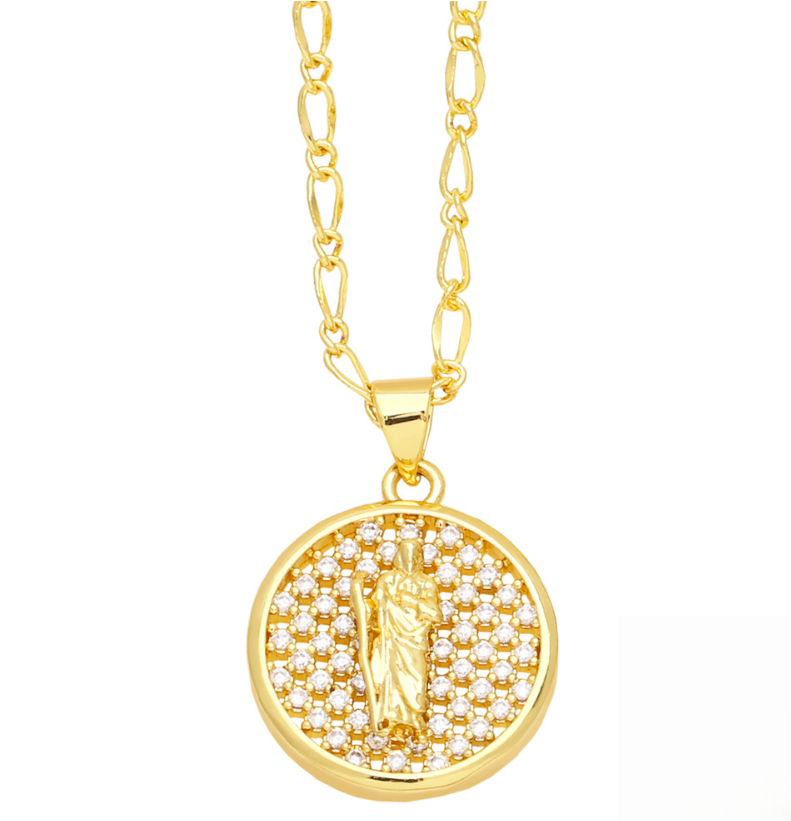 Dainty Saint Jude Medal Gold Pendant Necklace with pave style cubic zirconia and dainty modern style chain.