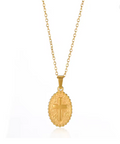 Our Dainty Cross Oval Necklace in gold is a perfect blend of elegance and faith. Its delicate oval pendant with a finely detailed cross adds a subtle yet meaningful touch to your everyday style.