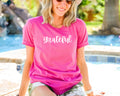 A reminder to be grateful every day. This classic short sleeve tee fits like a well-loved favorite. Soft cotton.