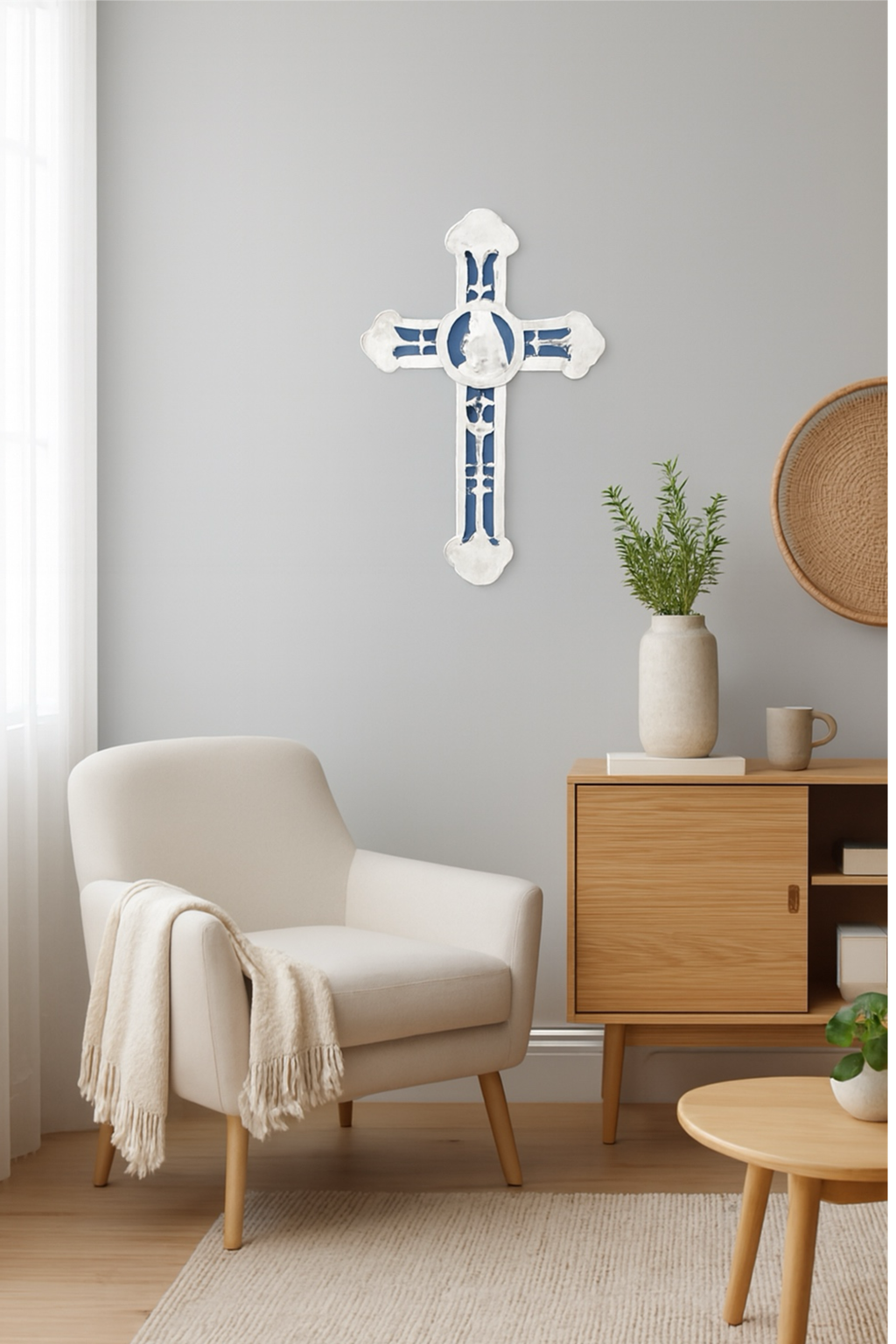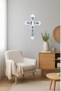 This wall cross showcases a peaceful Madonna & Child design in the timeless Della Robbia style, celebrated for its rich blue and white tones and intricate detailing. A beautiful devotional accent, it’s perfect for enhancing a home prayer space or giving as a meaningful gift.