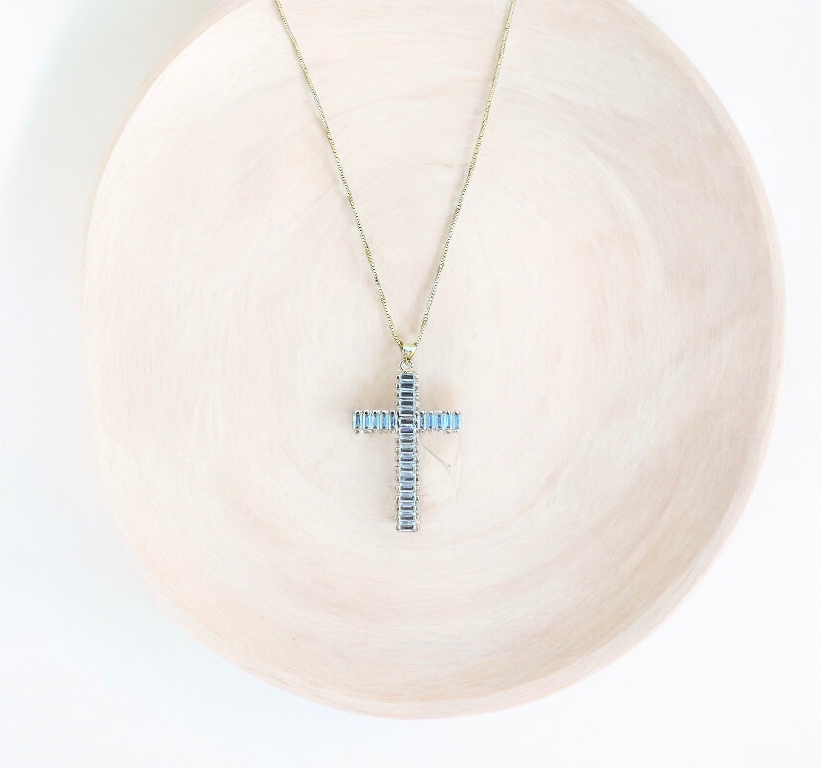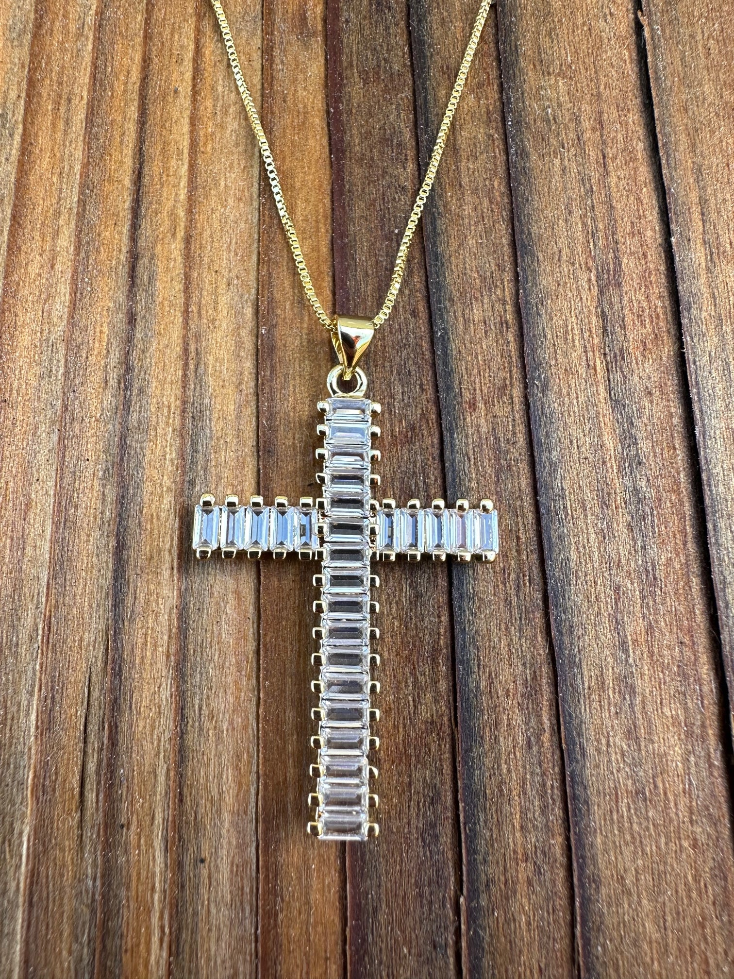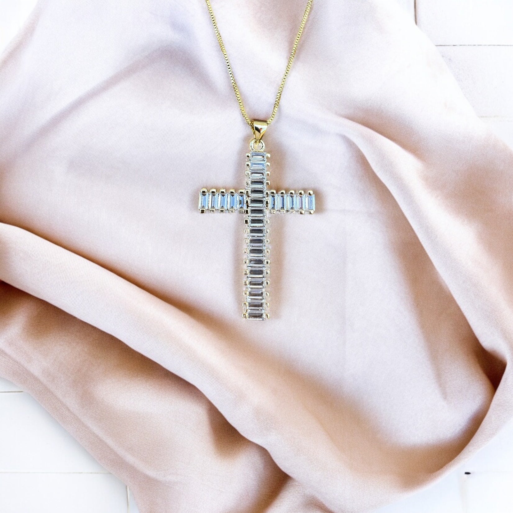 Make a statement with this 18K Gold Plated Stainless Steel Women's Cross Necklace. Beautiful unique cubic zirconia crystals detailing. Perfect size for layering with other necklaces