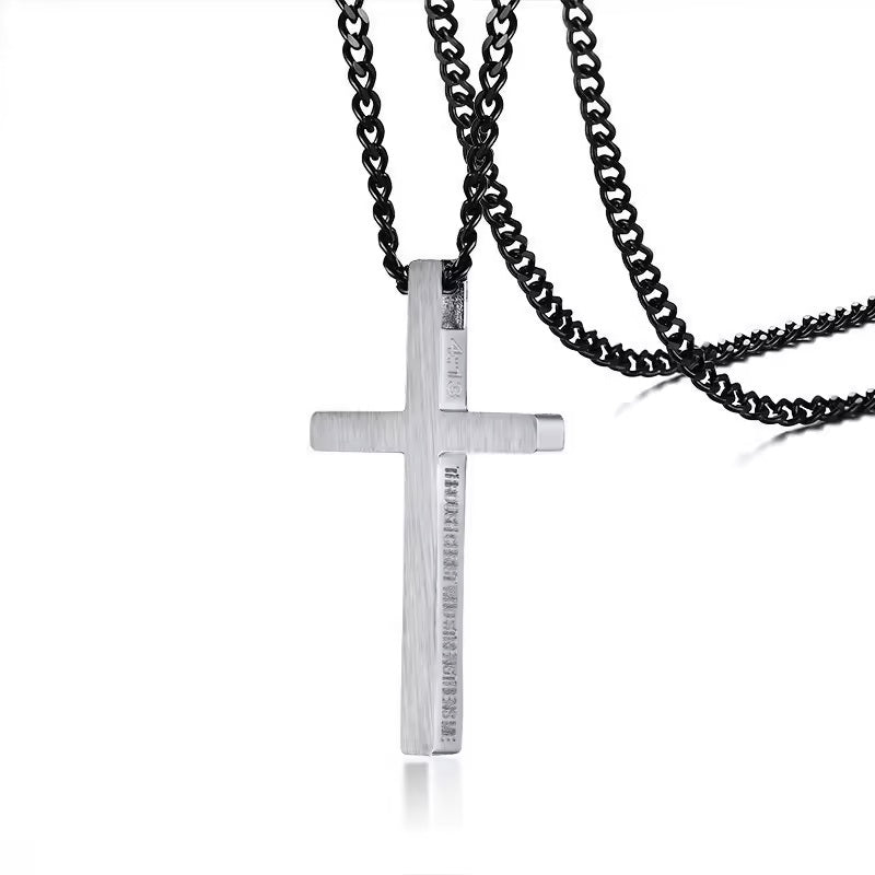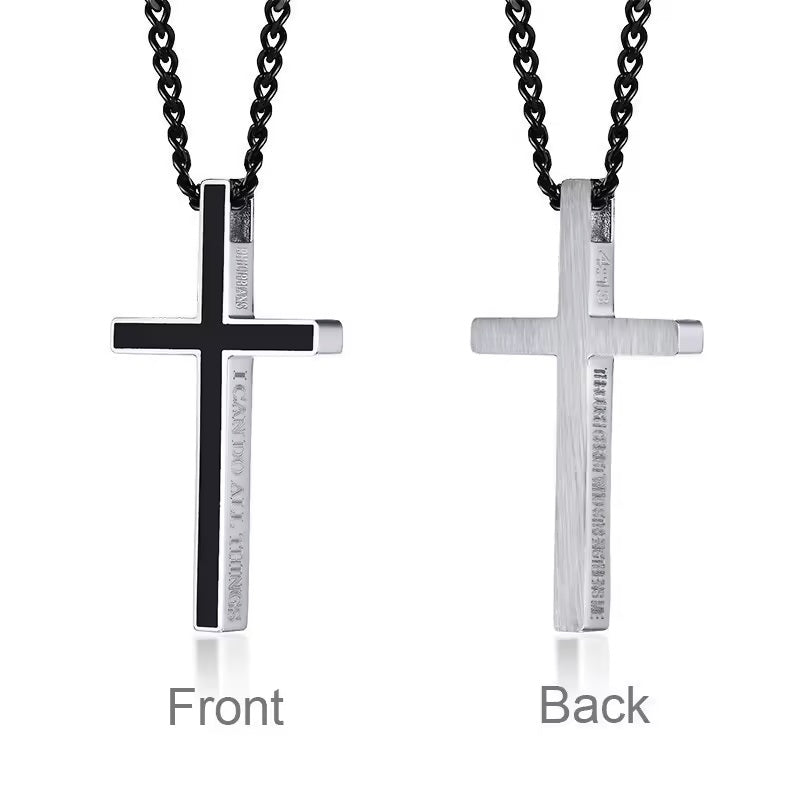 Men's Black Cross Pendant Necklace Philippians 14:3 Verse