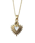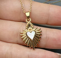 The Dainty 18K Gold-Plated Mother of Pearl Sacred Heart Pendant Necklace is a striking blend of elegance and spiritual charm.