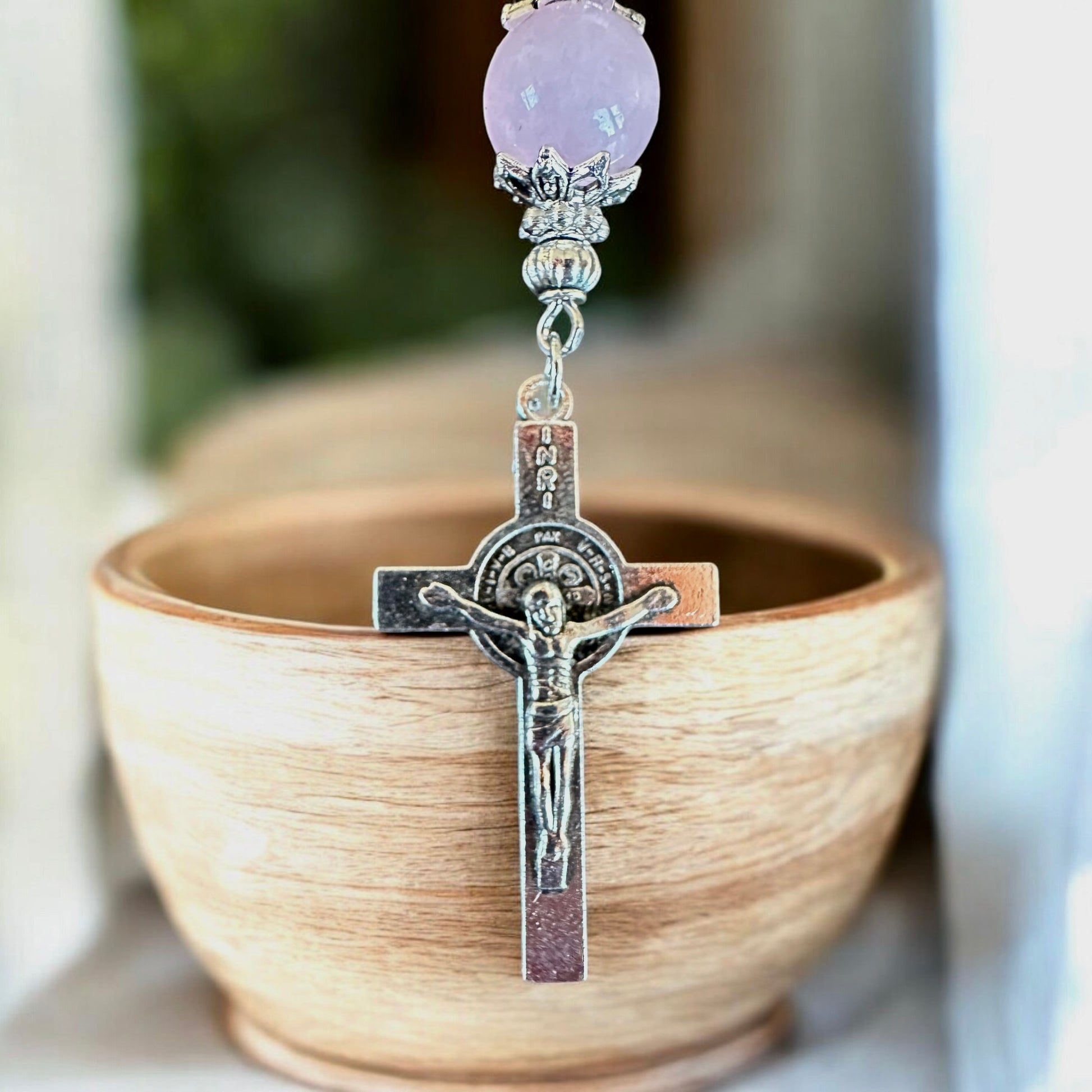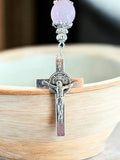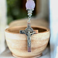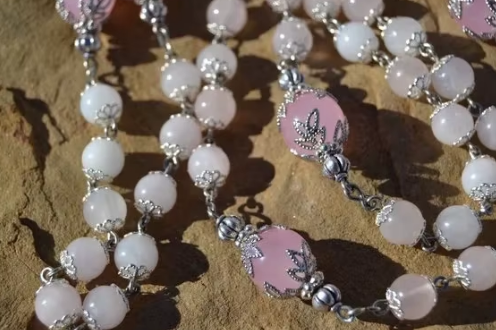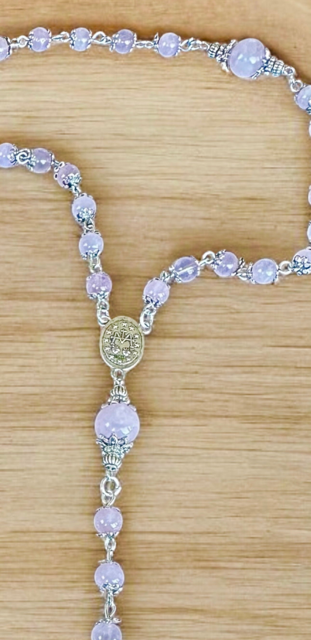 Handmade Pink Rose Quartz Rosary with Miraculous Medal.
