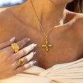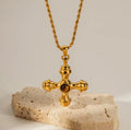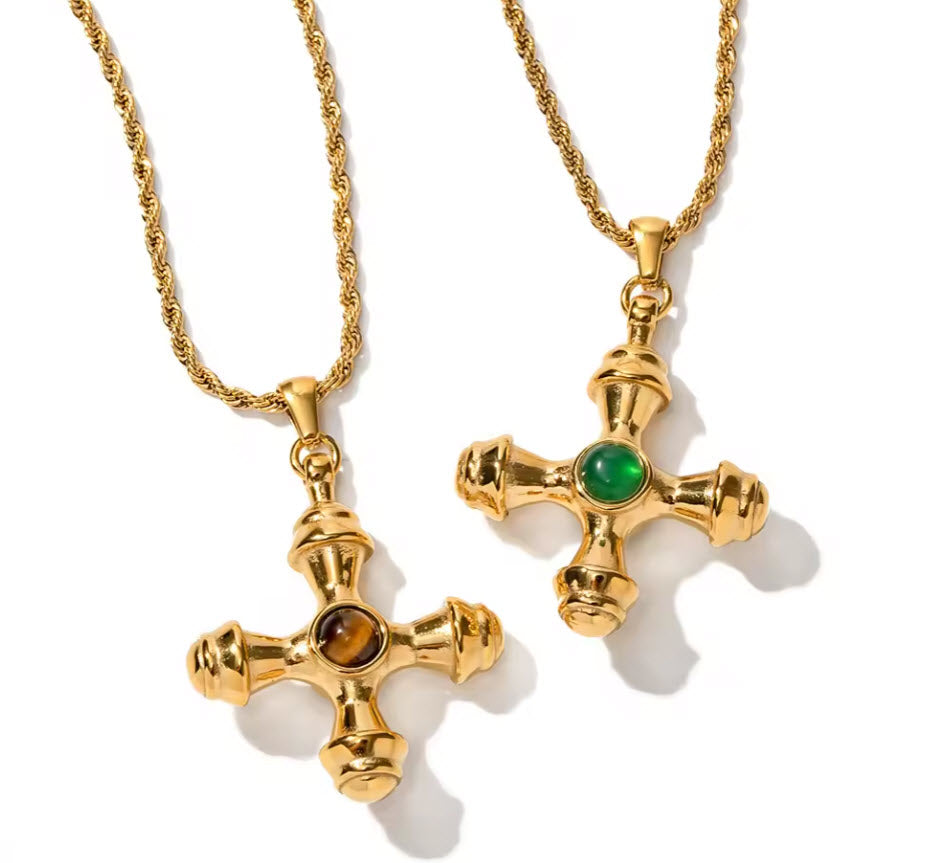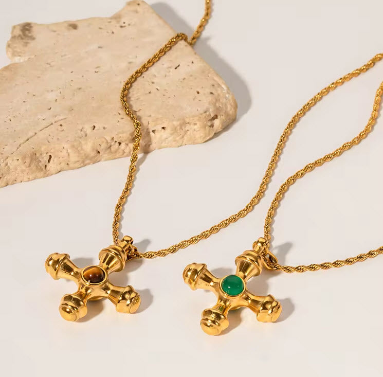 Make a statement with this gorgeous Tiger Eye Cross Pendant Necklace. The vintage design features a tigers eye gemstone on our popular rope chain. Tiger's Eye is believed to enhance discernment and insight and it is associated with protection, courage, and confidence.