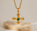 Make a statement with this gorgeous Green Cross Pendant Necklace. The vintage design features a green agate gemstone on our popular rope chain. Green agate is a delightful gemstone cherished from the beginning of time for its exceptional properties.
