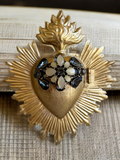 Vintage style pendant jewels embellished Sacred Heart Milagro Medallion. Each one is One Of A Kind!