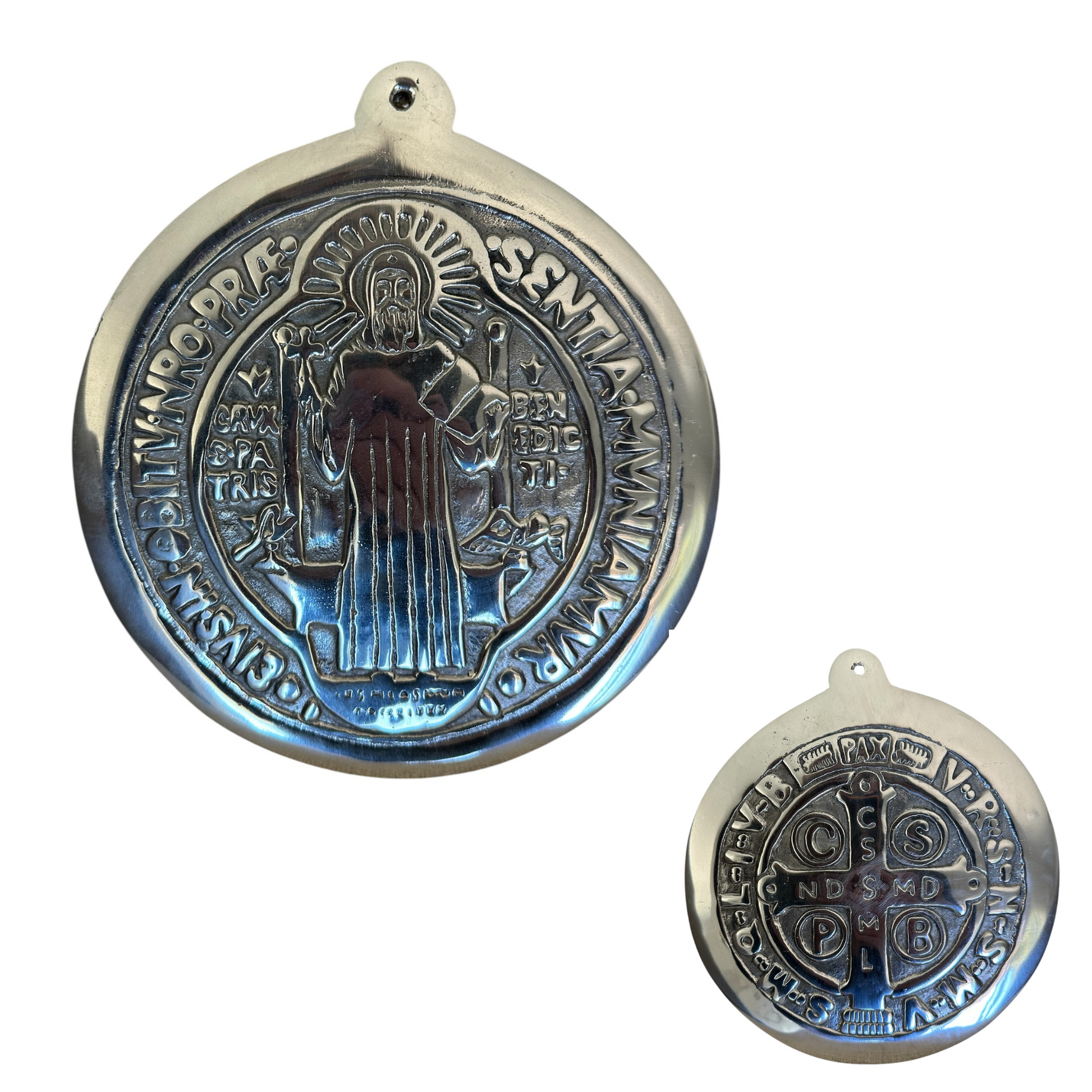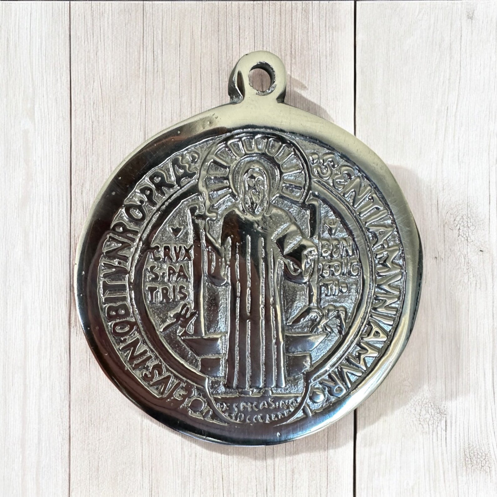 2 Sided St. Benedict Solid Pewter Wall Medallion(Large 8")