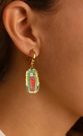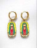 18K Gold Plated Virgin Mary or Our Lady of Guadalupe dangle earrings . Cute & colorful hand painted enamel . The perfect gift for birthdays, First Communion, or any occasion.