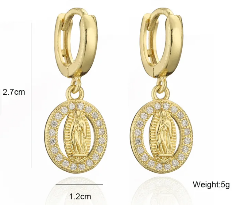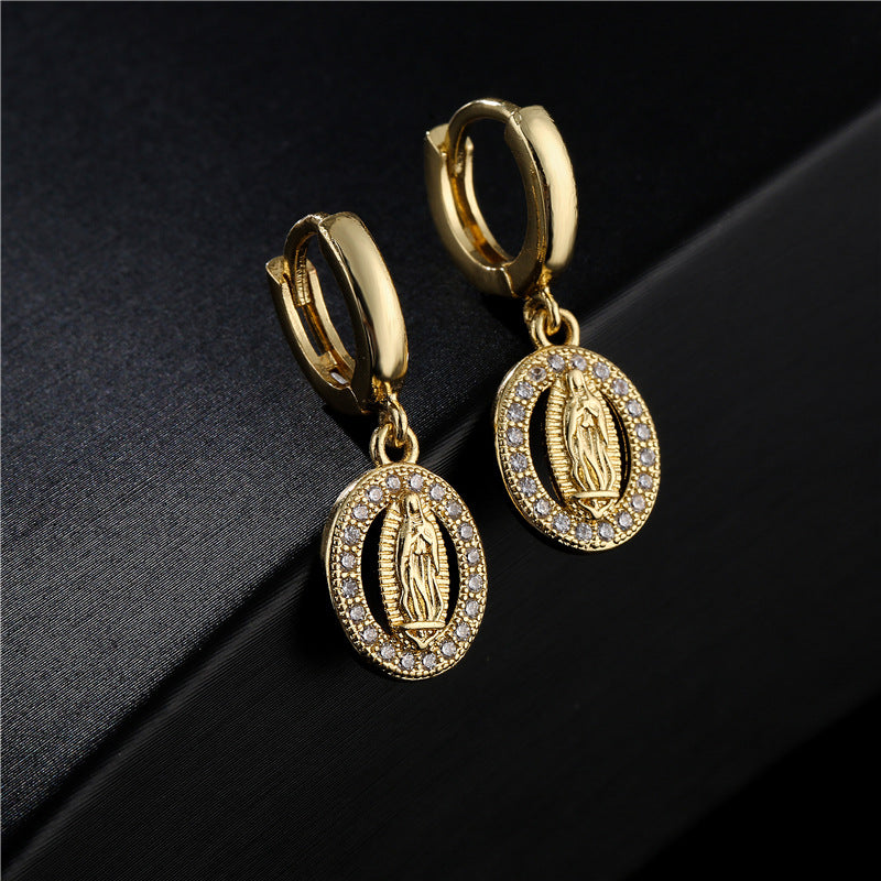 Virgin Mary Cubic Zirconia Huggie Earrings